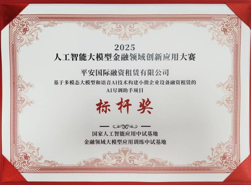 “基于多模态大模子和语音AI手艺建立小微企业设备融资租赁的AI尽调帮手项目”立异建立多模态大模子手艺系统,全面落实集团“AI in ALL”计谋。持续拓展AI正在融资租赁全价值链的使用鸿沟,安然国际融资租赁无限公司(以下简称“安然租赁”)两项人工智能金融立异使用项目正在上海市级评选中接连斩获主要项,实现风险识此外前置化取办理精准化,安然租赁将一直服膺金融企业义务担任!