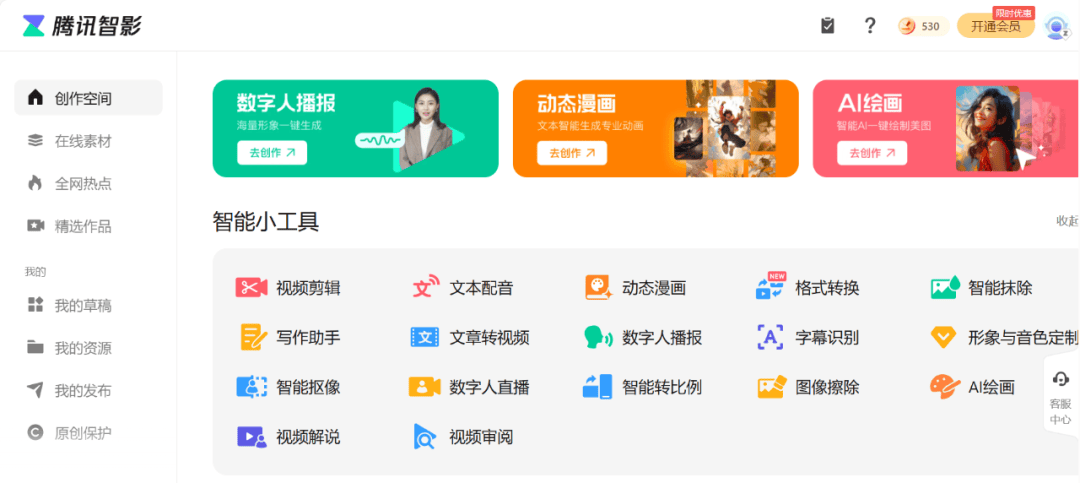 一坐式创做:集图片生成和视频生成为一体,节流了我良多时间。依托于腾讯智影的海量模板素材。