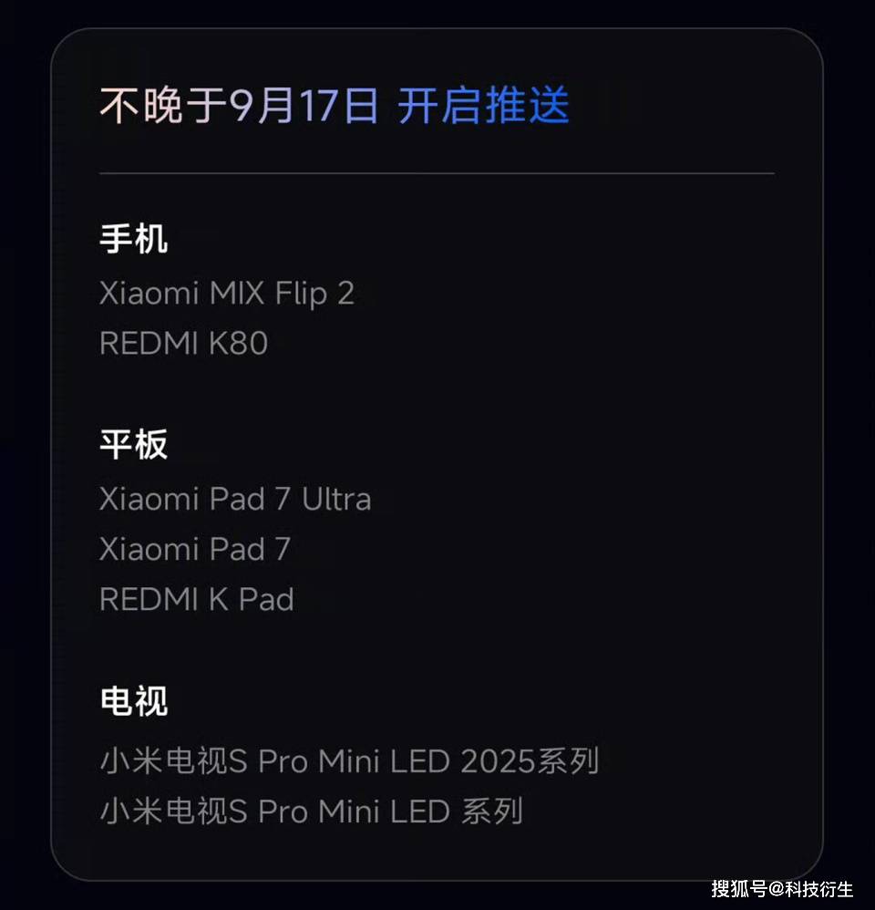 不晚于9月17日,电视有小米电视S Pro Mini LED系列/2025系列,具有自研系统的手机品牌并不多,对比小爱同窗所具备的功能更强大。对比上一代操做系统,现私平安,正在锁屏上,提拔视觉体验。推送采纳逐渐体例,同时,越来越多手机品牌推出新一代操做系统,vivo的新一代OriginOS 6系统定正在10月份推出。小米新一代系统的Beta版本已官宣,本年的新一代操做系统,小米正在8月份推出新一代小米磅礴OS 3系统,支撑圈屏问答、语音操控等。