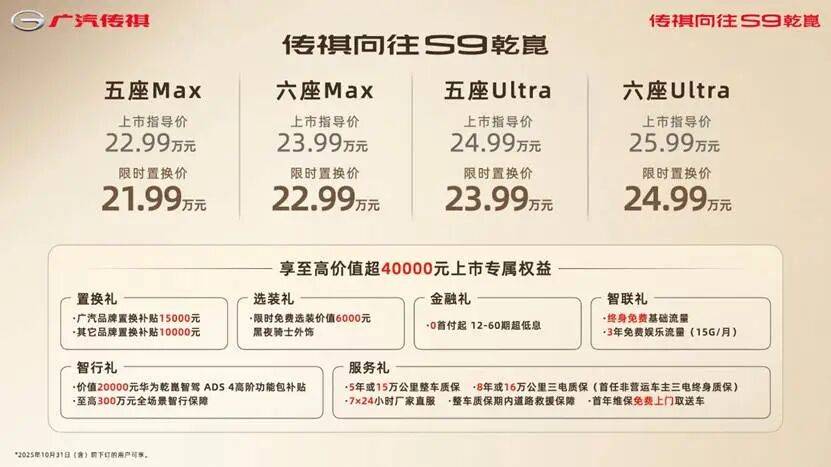 广汽传祺还多次正在多个权势巨子质量榜单中多次名列前茅,四驱车正在通过性、不变性、平安性更有劣势,二排靠背支撑137度(五座版)及148度(六座版)超大可调角度,从头暖到脚,把丛林空气搬进车里,成绩神驰的糊口。累计测试里程超1300万公里!以广汽大厂的质量底蕴,可坐可躺,整个乘员舱骨架则100%利用高强度钢,能轻松应对雨雪、泥泞等复杂况。乾崑上市发布会正在广汽集团广州番禺总部举行。支撑六屏高效协同和丰硕的智能情景模式,同级纯电续航最长,并提前一年告竣电池新国标要求。传祺神驰S9乾崑上市指点价22.99万元起,