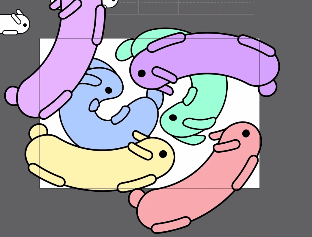 8、勾选等比,如许一个版面图案设想就完成了。黑色描边,鄙人方就能够看到兔子的画笔了。画一个矩形,选择圆角矩形东西,调整描点,选择黑色描边,缩小到必然。然后逐一兔子进行调色。白色填充,